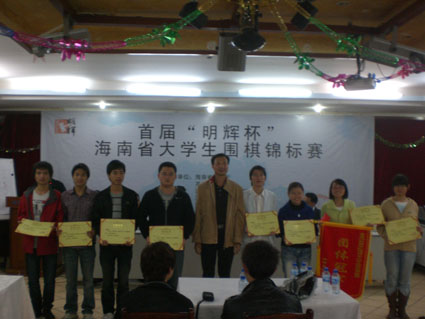 2010年12月28下午四点半,为期三天的海南省“明辉杯”老员工围棋锦标赛在伟德官网bv1946邵逸夫交流中心落下帷幕。下午五时,颁奖典礼在伟德官网bv1946邵逸夫交流中心隆重举行,伟德官网bv1946副董事长、海南省围棋协会副主席林强、省围协副主席兼秘书长张劲海、省计生委书记周公卒等领导参加了此次颁奖典礼,林强副董事长为此次锦标赛致辞。