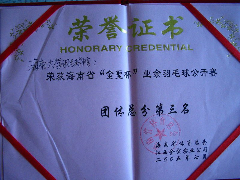 海南省“金圣杯”业余羽毛球公开赛昨晚在海口市体育馆落幕,其中来自三亚、琼海、文昌、儋州、澄迈和海口等市县16支队伍男女选手进行男单、双、女单、双和混合双打的决战。伟德官网bv1946获团体总分第三名及混双冠军。