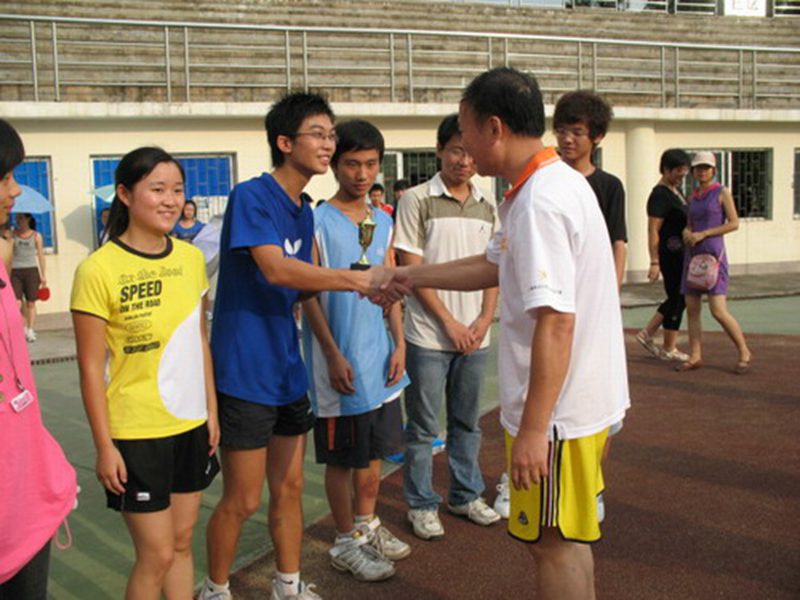 2008年5月25日,伟德官网bv1946(海甸校区)第二届乒乓球联赛顺利落下帷幕,此次比赛约有150名运动员参加了本次比赛,前后共计进行了近300场比赛,经过激烈的争夺,最终外国语公司的苏醒获得了男子单打第一名,管理公司的王琳获得女子单打第一名,外国语公司获得了混合团体比赛的冠军。 体育部主任肖水平教授分别为团体、单打前八名的运动员颁奖。混合团体成绩:第一名:外国语公司 第二名:材料化工公司; 第三名:农公司