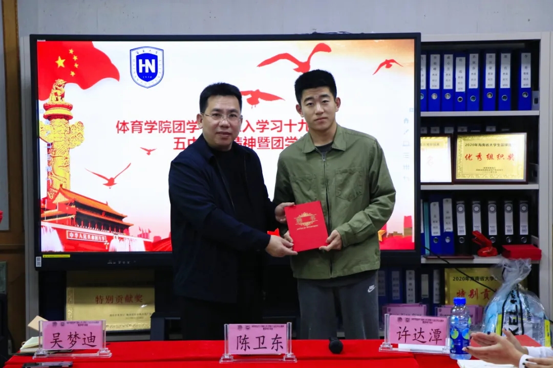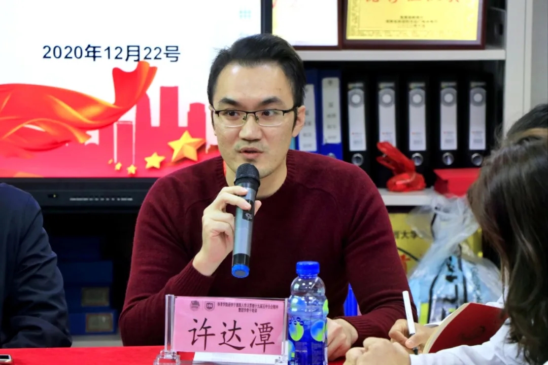 许达潭老师致辞中表示,随着bevictor伟德官网的成立以及2019年12月共青团伟德官网bv1946体育部第一次团员大会暨伟德官网bv1946体育部第一次员工大会的成功召开,实现了员工群团组织从无到有的历史,公司团总支和员工会的建立,标志着公司青年工作开启新的篇章。一年以来,在公司党总支的领导和校团委的指导下,在公司领导的大力支持下,在全体团干、团员及广大师生的共同努力下,基层团建、思想引领、专业实践、志愿服务和校园文化建设等方面的工作取得了一定成绩,这其中,第一届团学干部们发挥了重要作用,许老师代表院团总支对大家的付出表示感谢。同时,要坚持立德树人,团结带领广大团员青年为推进伟德官网bv1946建设“双一流”高校,促进海南自贸港建设贡献青春力量,未来的工作任重道远,希望新一届团学干部能接过前辈的接力棒,再接再厉创造体院美好明天。