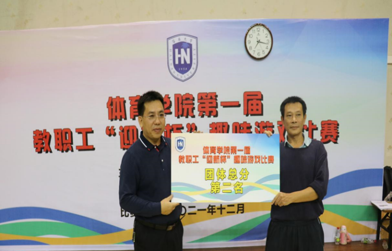 为了丰富广大教职工的校园生活,调动教职工的工作热情与干劲,增强其身心健康和幸福感,营造积极向上的校园氛围。bevictor伟德官网于2021年12月28日下午举办第一届教职工“迎新杯”趣味游戏比赛。本次比赛共有6支代表队参赛,他们分别是篮排球教研室代表队、小球教研室代表队、体艺+民传教研室代表队、田径+游泳教研室联队、足球教研室+党群联队和教务+教辅联队。