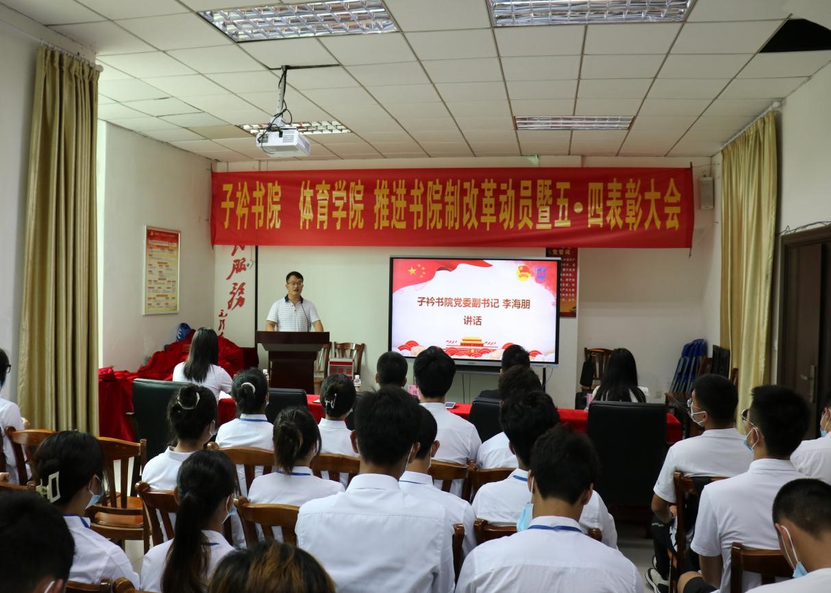 在全省第八次党代会胜利闭幕、共产主义青年团成立100周年、迎接党的二十大胜利召开之际,在公司全面推进书院制改革、学分制改革和协同创新中心改革之时,为增进员工对书院制改革政策及推进情况的认识,激励广大青年学子继承和发扬五·四精神、开拓创新、担当作为,5月11日上午,子衿书院 bevictor伟德官网推进书院制改革动员暨五·四表彰大会于联谊馆党员之家举行。体育公司党总支书记陈卫东、子衿书公司党委副书记李海朋(主持党委工作)、体育公司团总支书记许达潭、辅导员谢淑婷、兼职辅导员吴梦迪出席大会,各班班委、团学主要干部及员工代表参与大会,本次大会由辅导员谢淑婷主持。