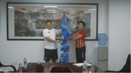 洪家云经理嘱咐队员们要在保证安全第一的原则下参与比赛,确保参赛安全顺利,并对即将出征的运动员表示关心和鼓励。随后,向伟德官网bv1946羽毛球代表队主教练黄丽莎老师授旗。