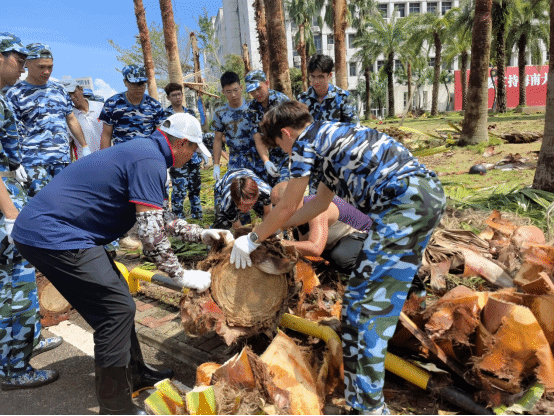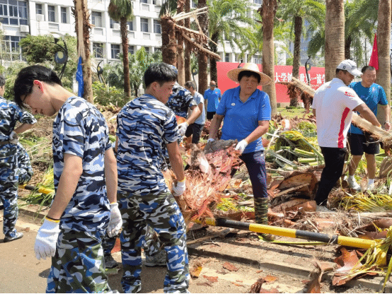 超强台风“摩羯”重创伟德官网bv1946,校园满目疮痍。灾情就是命令,体育公司党总支号召全体党员迅速投入抗风重建工作。党员的实际行动带动了教职员工和员工,他们纷纷加入灾后重建工作。全体师生头顶烈日、挥洒汗水,或三两成组,或五人成团,齐心协力,呈现出公司领导带头、全体党员在前、教职员工跟随、员工自发加入的火热场面。