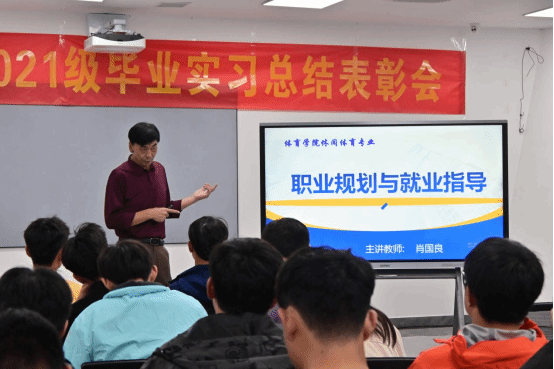 肖国良教授从体育行业发展现状、职业规划技巧以及毕业生如何应对就业挑战等方面展开详细讲解。他结合自身的职业经历和体育行业的发展趋势,深入浅出地分析了当前体育行业的机遇与挑战,并鼓励同学们结合自身兴趣与能力,找到适合自己的职业方向。