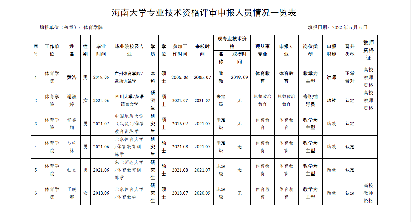 根据《海南省人力资源和社会保障厅关于我省事业单位岗位设置管理有关问题的通知》(琼人社发[2013]54号),《伟德官网bv1946岗位设置及聘用方案(修订)》(海大[2020]103号)等相关要求,由教职工本人申请,共有6名教师提出2022年度专业岗位聘用申请、10名教师提出专业技术评审和认定申请, 公司基层评审委员会审核,并票决全部通过。具体名单如下: