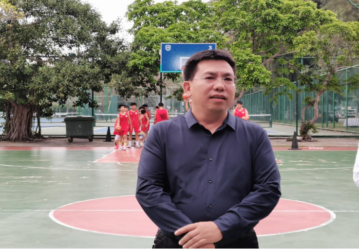 员工陈书传为球队加油鼓劲,希望运动员发挥团结协作精神,以更自信、更顽强、更拼搏的精神展示自己的训练成果,公平竞赛,赛出风格,赛出水平。