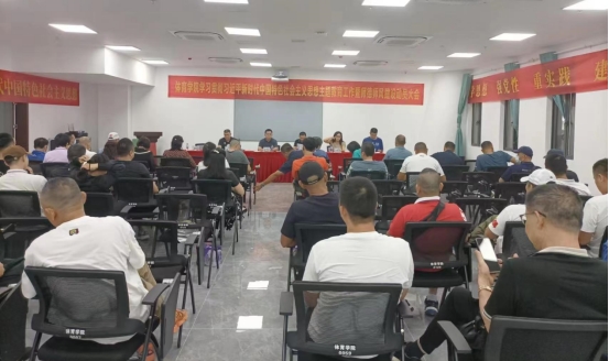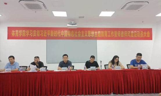 4月25日下午,体育公司党总支在多功能体育馆107会议室召开学习贯彻习近平新时代中国特色社会主义思想主题教育工作暨师德师风建设动员会议。会议由洪家云经理主持,陈卫东书记作动员讲话,公司班子、总支委员、党员干部及教职工参加会议。