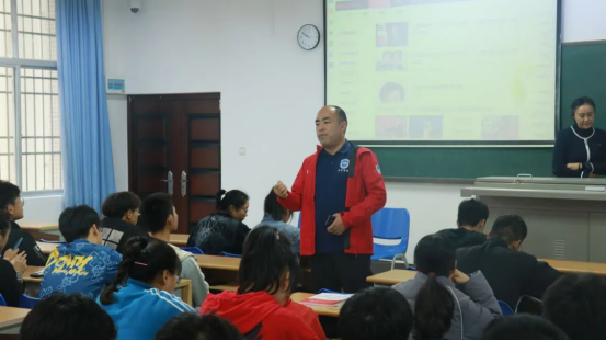 讲座正式开始,骆冰教授首先提到一种“无生上课”的方式,通过考生自己的组织、口令、示范和讲解向面试官展示自己作为老师的上课方法与过程。她还讲到面试前的准备至关重要,只有准备充分才能确保在面试中万无一失。接着,她讲到面试流程,重点分析面试的步骤和教案的讲解,让同学们清楚课程的教案是由开始部分、基础部分、结束部分构成,并让同学亲自上台进行体验,使同学们明确自己作为一名体育老师需要在课堂上讲解的重、难点,并且通过视频的形式让员工们更加清楚整个面试考试的过程。